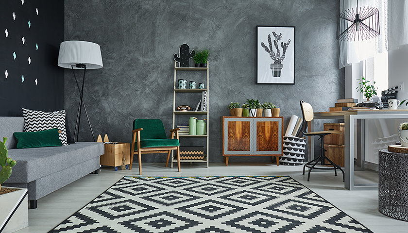 Textured paint finishes are a popular way to add three-dimensional style to your walls. Use metallic or glossy finishes that allow for highlights and reflections, bouncing light around to make the room look brighter.